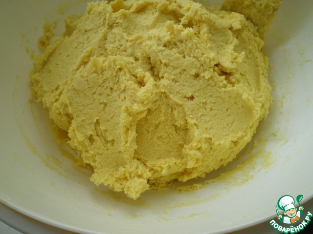 Готовим тесто. Для этого берем кукурузную муку и манную крупу.
