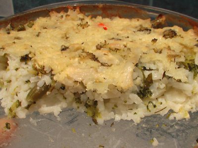 У меня овощи были мороженые, разморозила немного. Отварить рис без соли. Слить и обдать кипяченой водой. Овощи мелко нарезать и слегка посолить (5 г. ) добавить молоко и рис, перемешать и выпекать при 180 градусах минут 30. Корочку ребенку я снимала, овощи получаются мягкими и нежными. Понравилось даже мне, только я посолила себе потом немного!