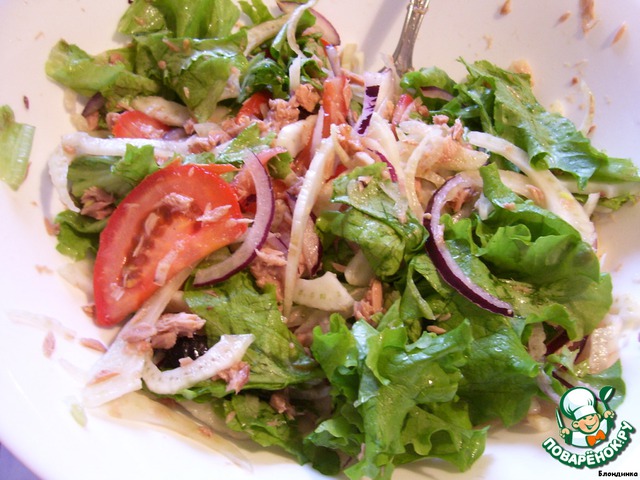 | Уже давненько в супермаркетах смотрела на фенхель, но все не покупала. И вот сегодня настал "час Икс" - я его приобрела вместе с моим любимым тунцом. Муж сначала подозрительно нюхал этот непонятный продукт - фенхель не сильно популярный в наших краях зверь, но получившийся салат умял с явным удовольствием. Короче говоря, нам понравилось! Так что все любители фенхеля - прошу на огонек. И те кто ни разу не пробовал - тоже заходите! Вдруг стоит попробовать и, может, даже полюбить? |