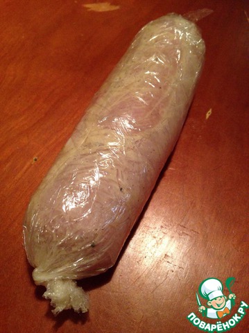 Скручиваем колбаску в 3-4 слоя очень плотно и связываем края нитками. Тоже самое делаем со второй грудкой