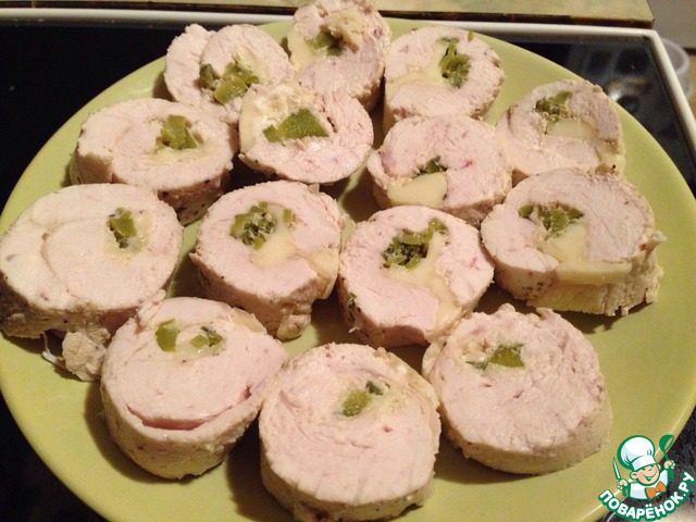 Освобождаем колбаски от пленки и режем колесиками) наши рулетики диетические готовы.