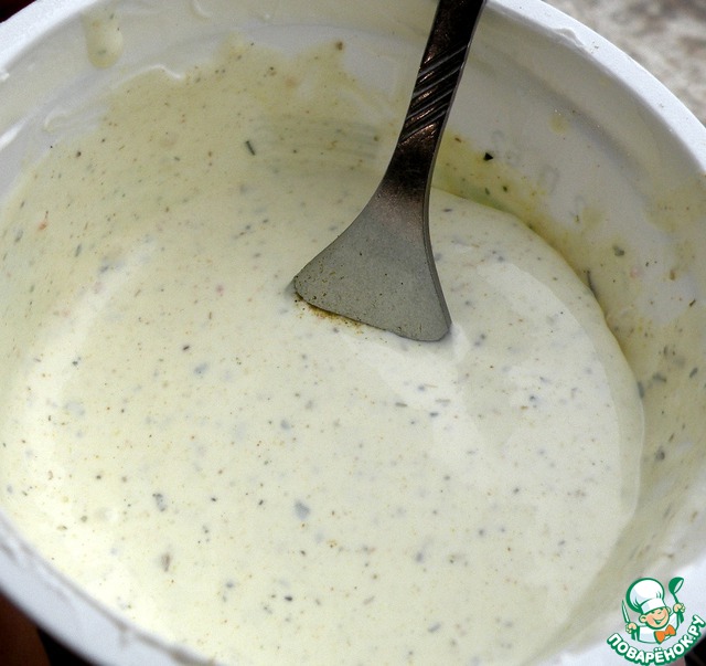 Сметану вымешиваем со специями для рыбы до однородной массы