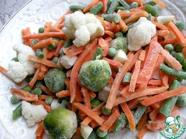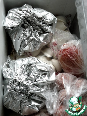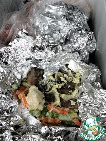 В замороженном виде все выглядит вот так, но раскрывать мешочки перед запеканием в духовке не нужно