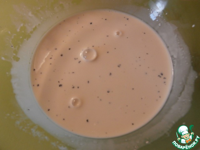 Яйца взбить со сливками, посолить и поперчить по вкусу,