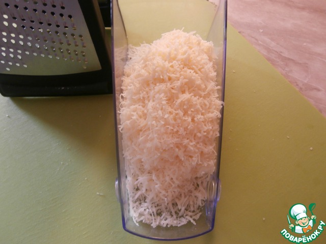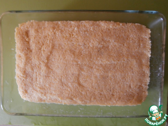 Смазать форму для запекания оливковым маслом. Накрыть этой формой сформированную нужным для вас образом поленту, перевернуть её вместе с доской, на которой лежит полента.