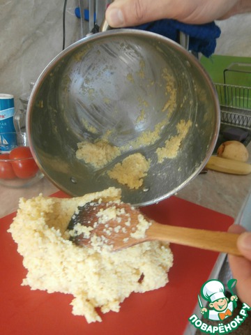 Периодически смачивая лопатку водой, вылепить из выложенной горячей массы поленты нужную вам форму.