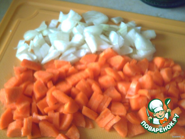Потом нарезаем лук и морковку.