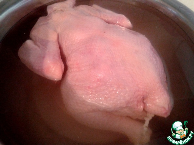 Заливаем холодной водой и оставляем в рассоле на 1,5 часа.