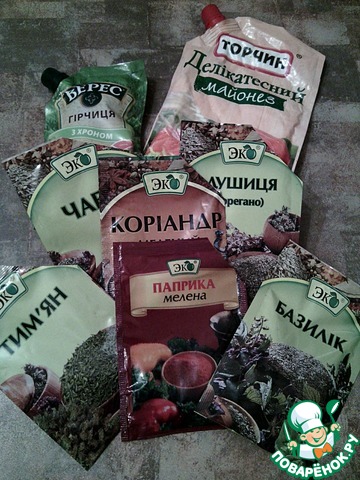 Собрать в кучу специи, горчицу (я люблю "горцица с хреном"), майонез