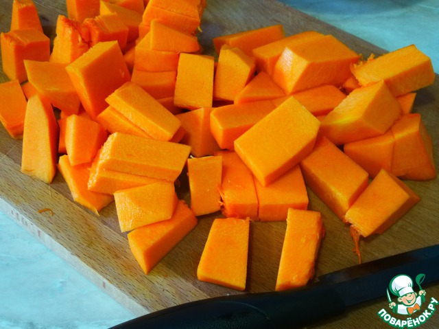 Почистить и нарезать тыкву кубиками