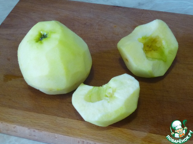 Очистить от кожуры яблоко, разрезать пополам и удалить сердцевину