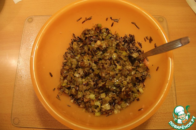 Перемешиваем фарш индюшачий с яйцом + дикий рис,