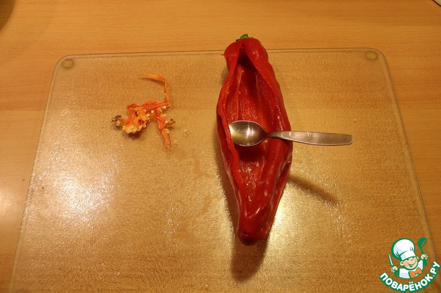 Наш перец готов. Отрываем края и аккуратно разворачиваем. Можно кушать.
