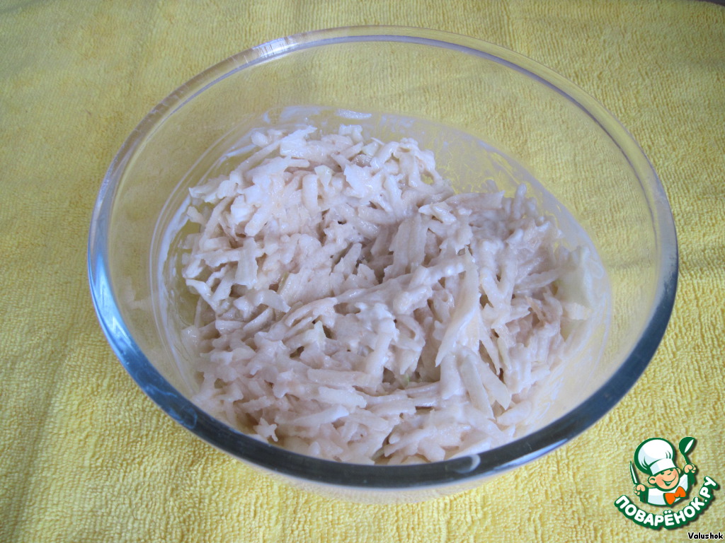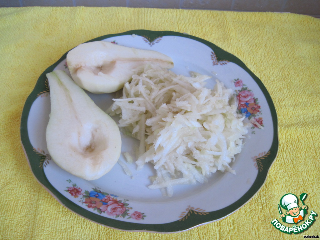 Смешаем творог, груши, желток с хлопьями, добавим ванилин