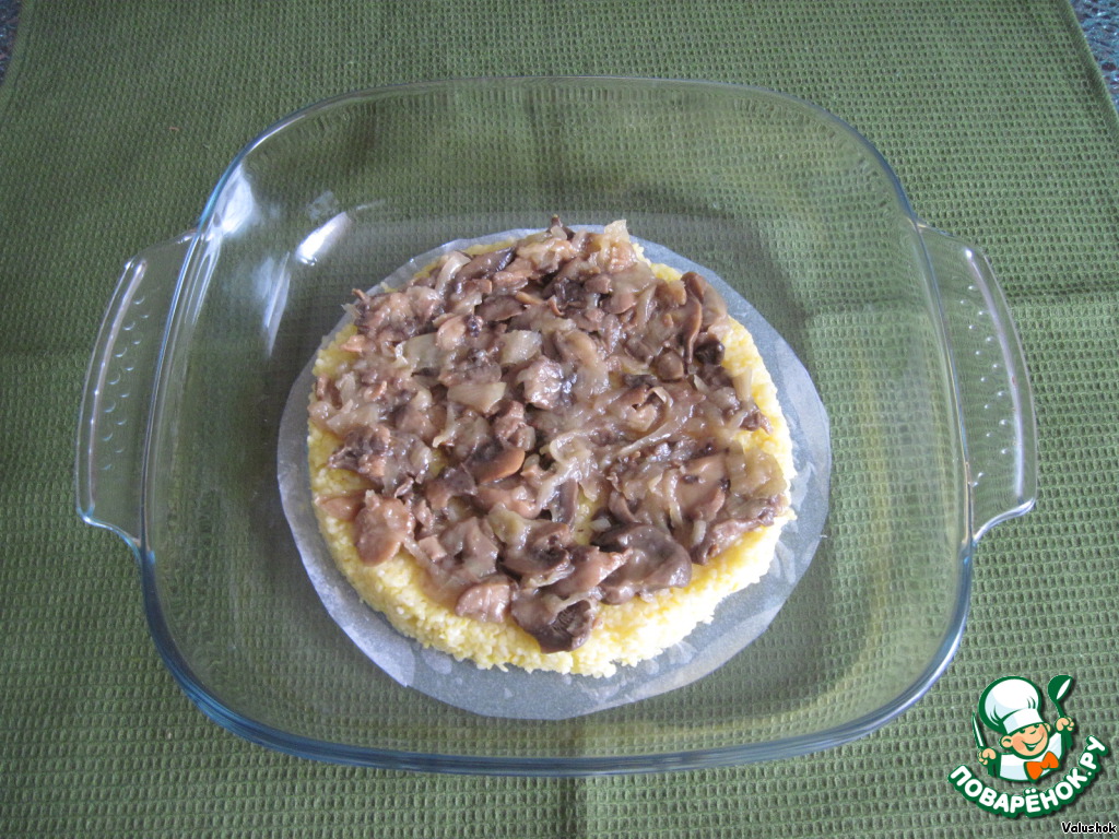 Выложить половину порции каши в огнеупорную форму.