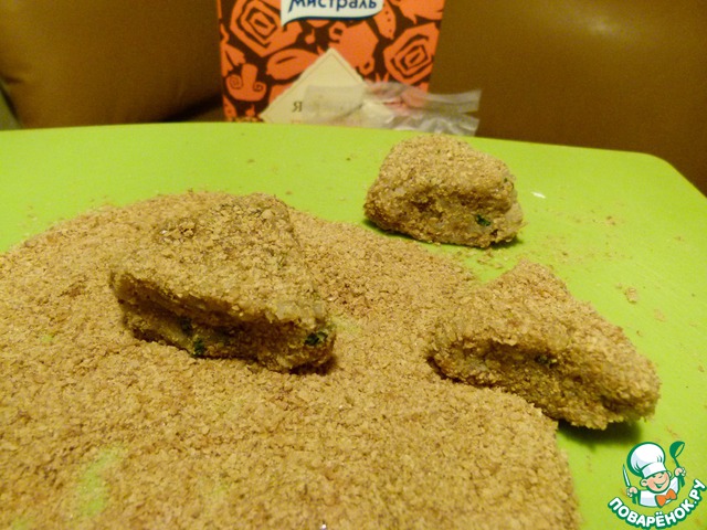 А еще вот так: обваляла сформированные фигурки в перемолотых гречневых хлопьях и обжарила. Получилась хрустящая панировка, чесночок дал дополнительный аромат от теплообработки. Красота.