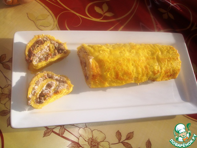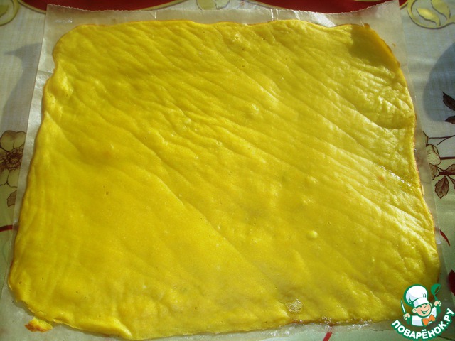 Рулет из тыквы с начинкой из гречки, брынзы и вяленых помидоров