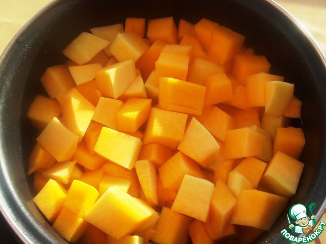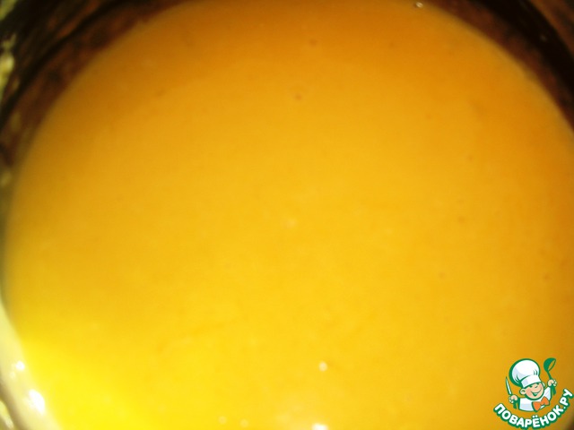Взбить венчиком рисовую муку с яйцами и тыквенным пюре, немного посолить. Бумагу для запекания смазать сливочным маслом (обильно) и остальное масло положить в тесто. вот такое жизнерадостное желтенькое тесто получается