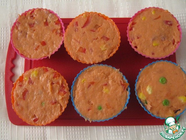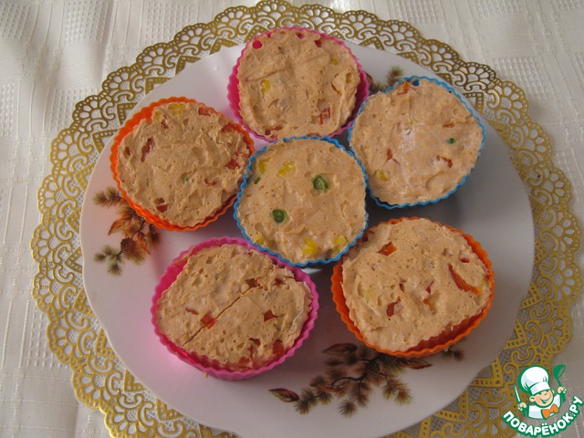 Силиконовые формочки наполняем рыбным фаршем.
