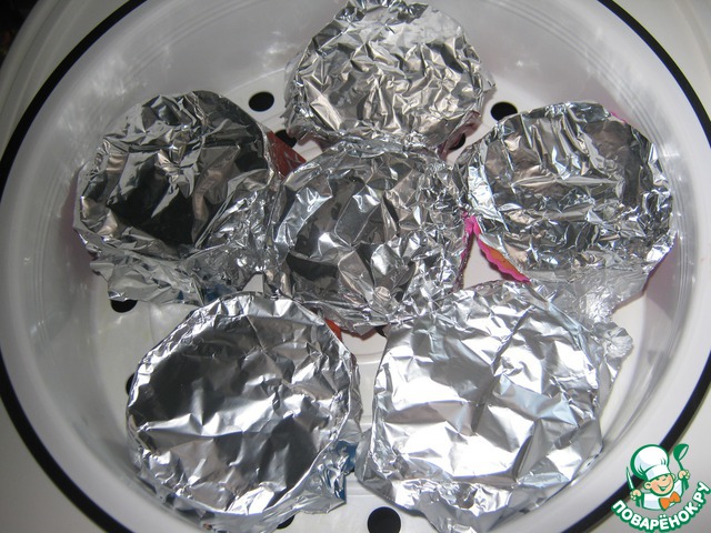 Формочки накрываем фольгой и варим на пару в мультиварке или пароварке.
