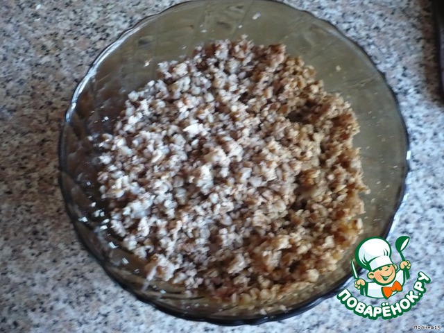 Мясо пропустить через масорубку или разобрать кусок курицы и смесить его в блендере, затем смешать с гречкой. Кабачки натираем внутри солью, и выкладываем в них начинку.