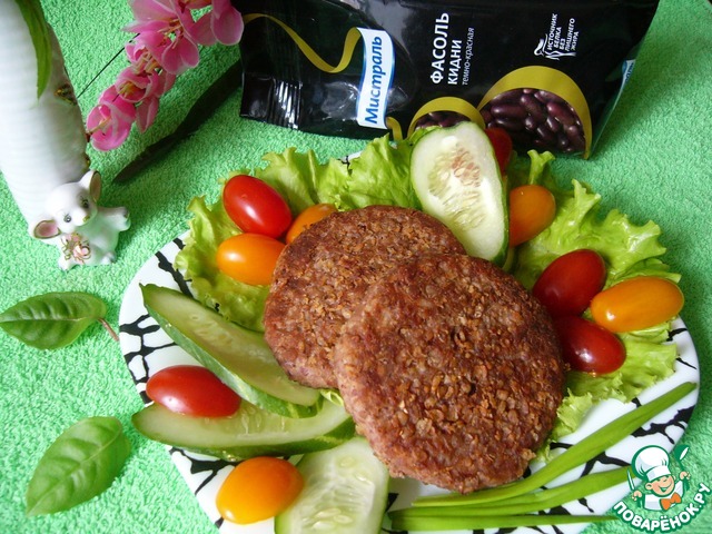 | Котлеты из фасоли и курицы, обжаренные в гречневых хлопьях. Самостоятельное блюдо, не требующее гарнира |