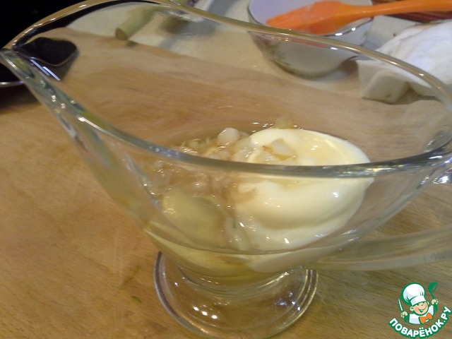 Готовим соусы. Один - горчичный, второй - соево-медовый. На небольшом количестве масла обжариваем чеснок и смешиваем его с дижонской горчицей и постным (или легким) майонезом.
