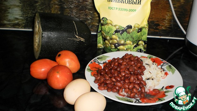 Огромный плюс этого блюда в том, что наесться хватает небольшой порции, и чувство голода долго не будет вас беспокоить. Рис, как известно, полезен витаминами группы В, кабачок хорошо адсорбирует токсичные вещества, в фасоли содержатся практически все минералы и вещества, необходимые для нормальной жизнедеятельности, в общем, как ни крути, одна польза. А майонез - это ложка "дегтя"