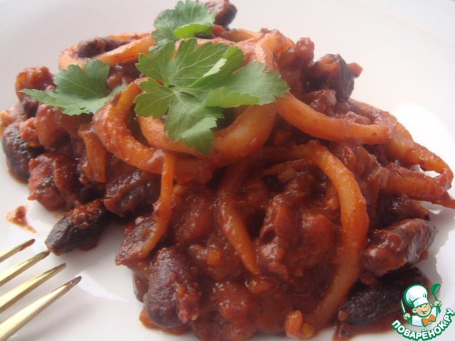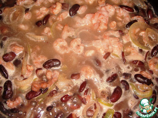 Фасолевое рагу с креветками и кальмарами