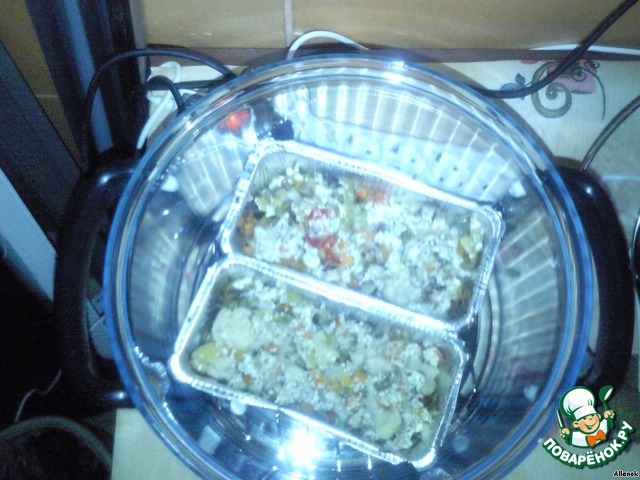 Затем открыть крышку, присыпать чуть сырком и подрумянить без крышки на высокой скорости 5 мин при той же температуре.