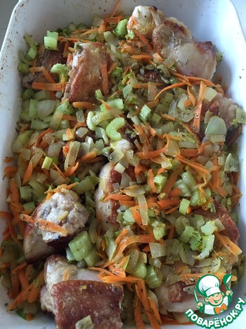 Переложить кусочки кролика в форму и засыпьте овощами. Добавьте соль, сливки ( хотя, этот шаг можно смело пропустить)