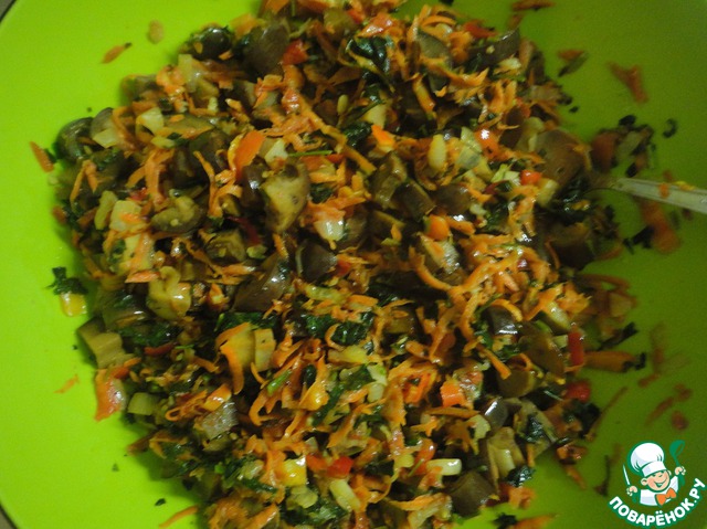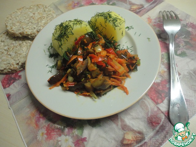 Я каждый сезон нарезаю в морозилку овощные смеси. Вот ими и пользуюсь, когда нет уже на огороде. Эта под названием "Баклажанная икра", т. е. там находятся баклажаны, помидоры, лук, морковь и болг. перчик.