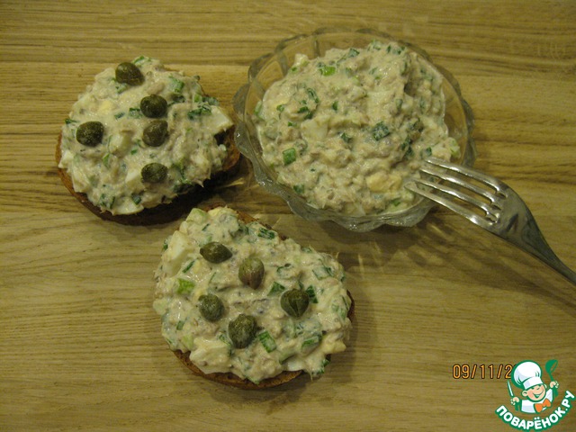 Кладем закуску на хлеб, сверху украшаем каперсами. Приятного аппетита!!!