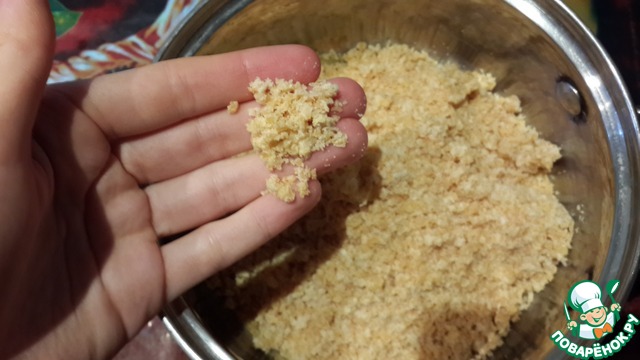 Для начала нужно нут залить холодной водичкой (лейте побольше) и оставить на ночь. Затем нут отварить и обсушить. Теперь нужно измельчить нут в муку с помощью блендера. Получается вот такая крошка.