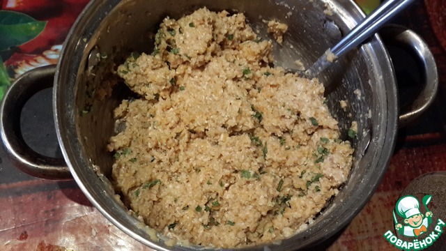 Теперь измельчаем овсяные хлопья и отруби в муку и соединяем с нутом. Добавляем яйцо, кефир, специи и соль. Хорошенько вымешиваем тесто.
