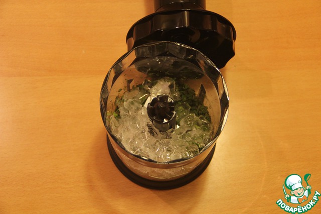 Добавляем к измельчённой мяте лёд и измельчаем.