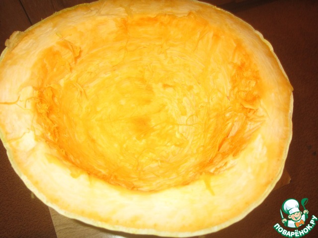 Тыкву вымыть и разрезать пополам, удалить семена, если она не достаточно пустая из нижней части удалить мякоть