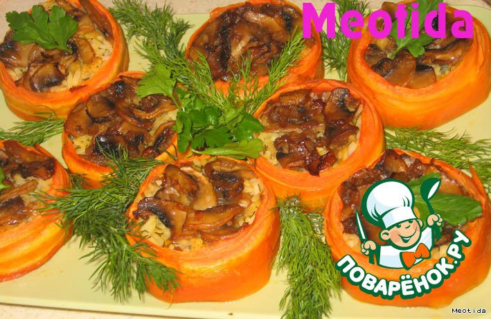 | ... Заповедный напев, заповедная даль. Свет хрустальной зари, свет, над миром встающий. Мне понятна твоя вековая печаль, Беловежская пуща, Беловежская пуща... как хочется, повязав косынку на голову.. взять в руки лукошко.. и войдя в лесную чащу.. наслаждаться звуками умиротворения.. вдыхать ароматы вечности.. ступать ногами по бескрайнему зеленому ковру... и набрать целую гору грибов.. но так как в наших донских степях трудно найти лесную чащу.. предлагаю такой одомашненный вариантик морковных корзиночек: нежный сочный гарнирчик .. приятное сочетание слегка припущенных свежих помидорчиков.. пряный нежный рис.. и сочные жареные грибочки.. вкусненько "Постимся с Moulinex". |