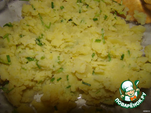 Картофель отварите...остудите...Разомните с поможью вилки...посолите..добавьте порезанную зелень