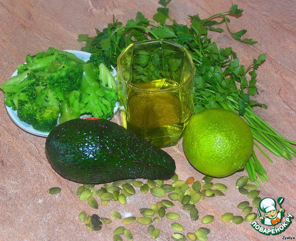 Брокколи отварить. Все измельчить с помощью блендера до однородной массы.
