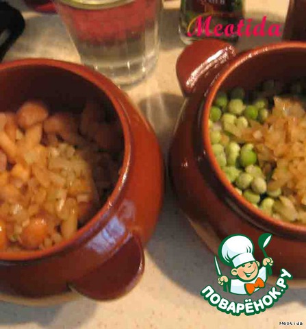 горшочки - это замечательная вещь...ведь в каждом можно приготовить разное блюдо!...кто-то любит с горошком...кто-то с кукурузкой..кто-то с грибочками!...можно угодить каждому..и при этом затратить очень мало времени на приготовление:)