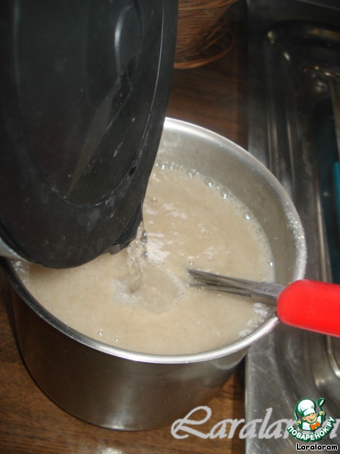 Приготовить ржаной кисель: для этого ржаную муку разводим водичкой до состояния на "оладушки", затем, энергично помешивая, вливаем 1 л кипятка. Остужаем...