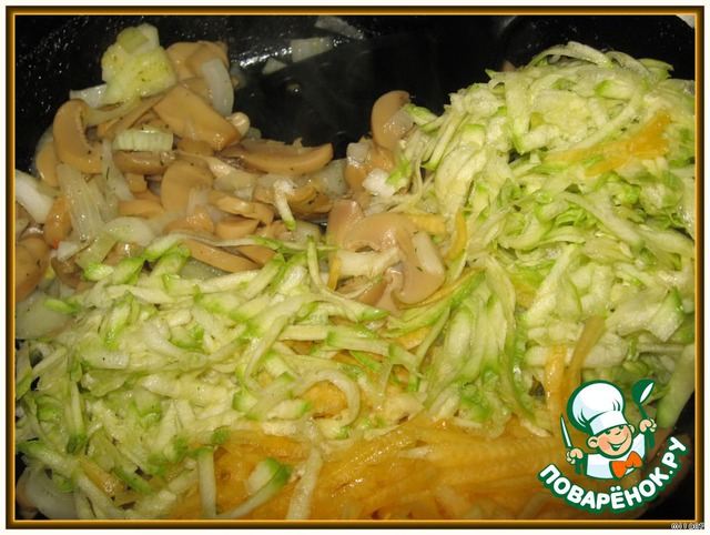 В наполовину готовые грибы лук добавляем тыкву и кабачок.тушим до готовности.
