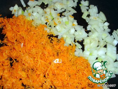 Добавить в сковороду тертую морковочку и тоже немного обжарить.