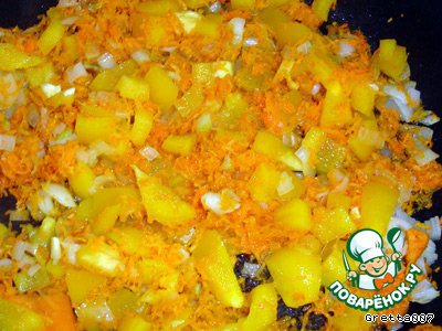 Сладкий перец и тыкву (у меня была мороженая) нарезать кубиками и добавить в рагу.