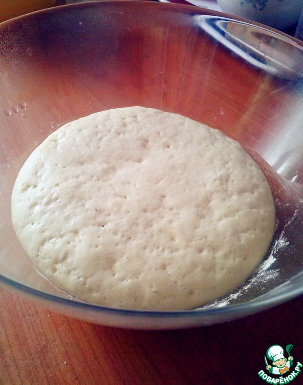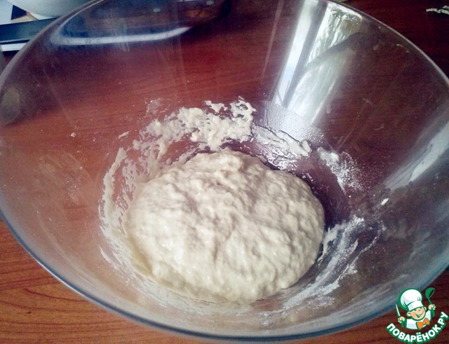 Для этого в теплой воде растворяем сахар и дрожжи, и даем постоять 5 минут. А этим временем просеиваем муку и солим. ( В этот раз я готовила из пшеничной муки, но обычно смешивают пшеничную и рисовую муку в равном колличестве). Соединяем жидкие и сухие ингредиенты, а также добавляем растительное масло. Замешиваем тесто и отправляем его в теплое место примерно на час.