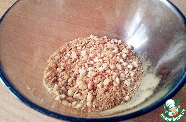 Орехи измельчаем и смешиваем их с коричневым, простым сахаром и корицей.
