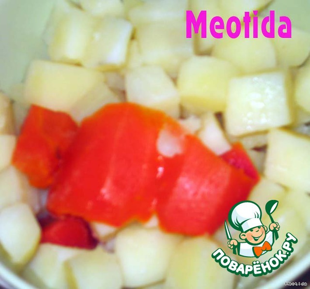 картофель с морковочкой превращаем в пюре с помощью блендера, приправляем солью и перцеп, по вкусу
