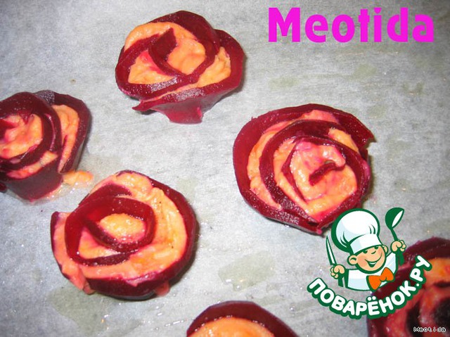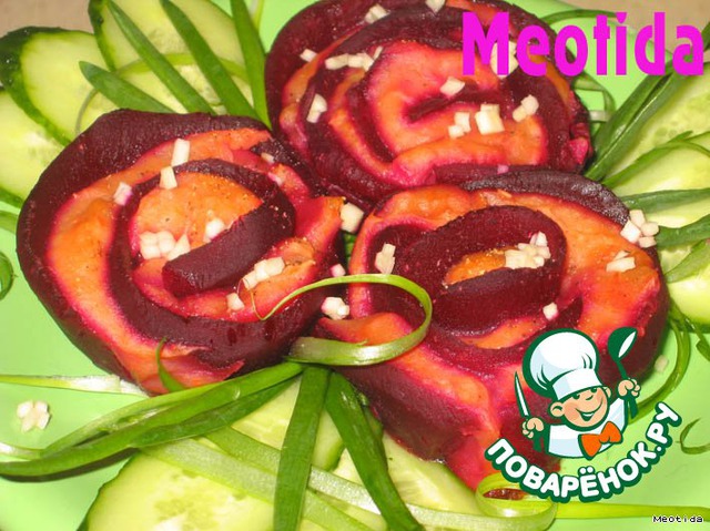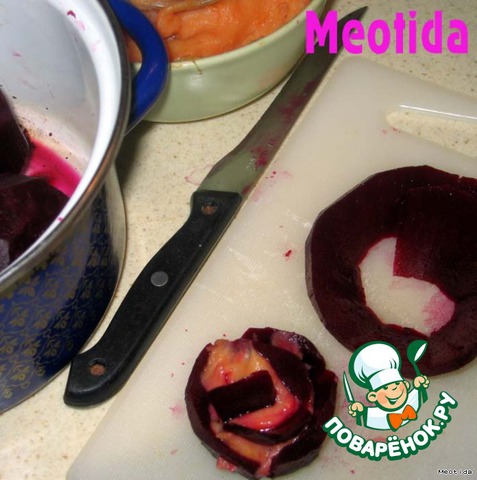 | цветы - символ жизни, любви и красоты!... самым шикарным цветком по праву считается роза.. ее нежные лепестки.. и тонкий аромат пленяют свой ярчайшей неповторимостью.. именно роза способна выражать все оттенки чувств.. все тонкости и краски любви.. от нежной.. до страстной и разрушительной.. я же предлагаю Вам разнообразить стол замечательным и вкусным гарниром из свеклы, морковочки и картофеля .. с небольшими дополнениями, которые делают эти розы достойными любого праздничного стола.. с такими цветочками любой постный стол преобразится... "Постимся с Moulinex" |