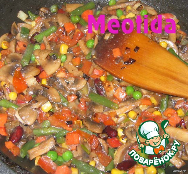 теперь по 1ст.л. ("с горкой") овощно-грибной смеси